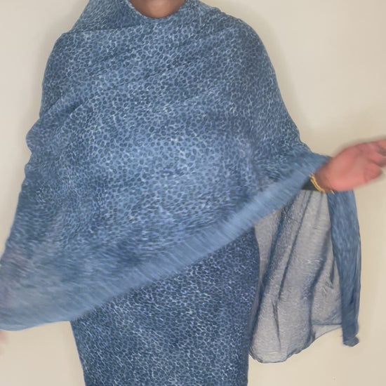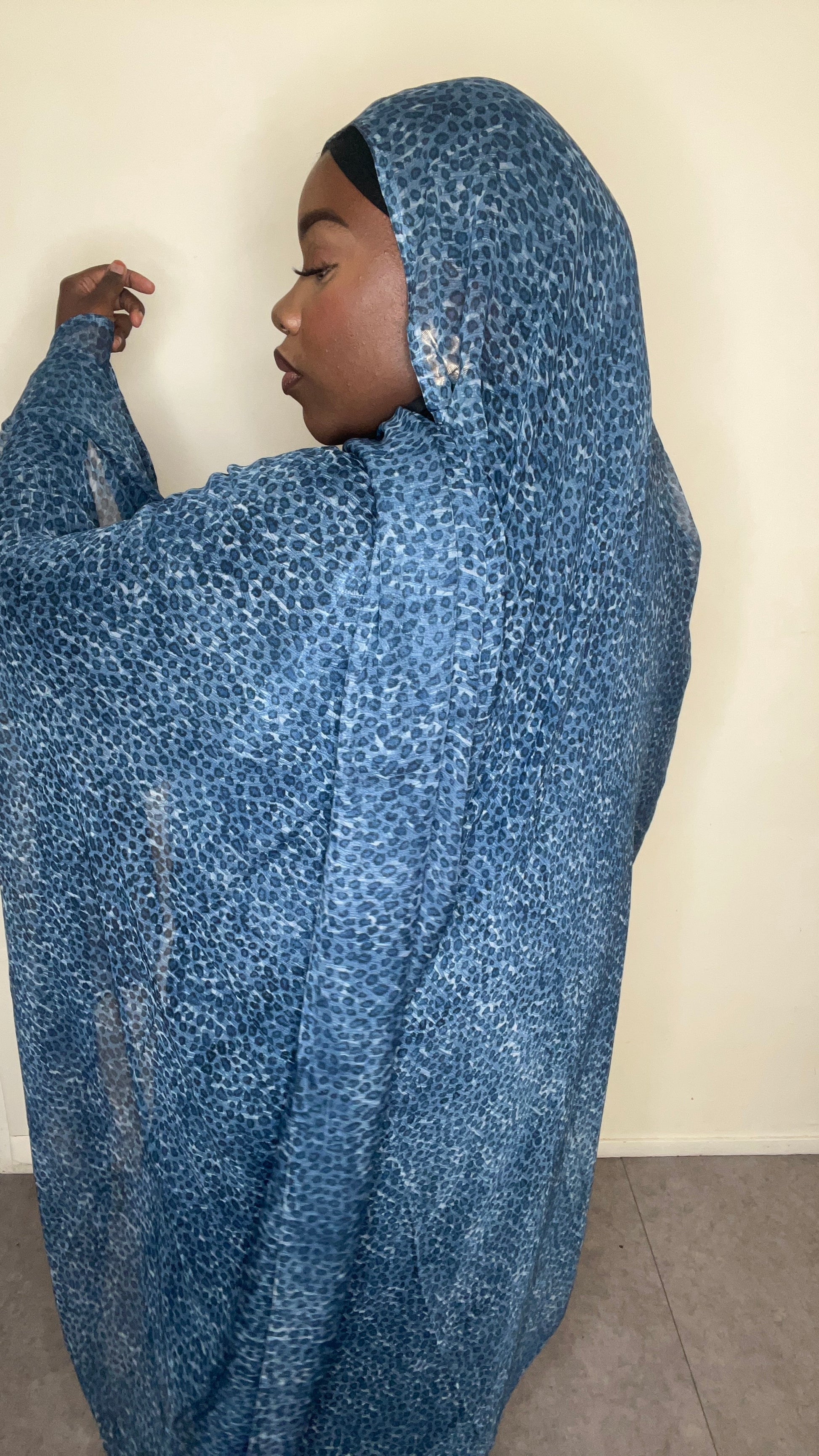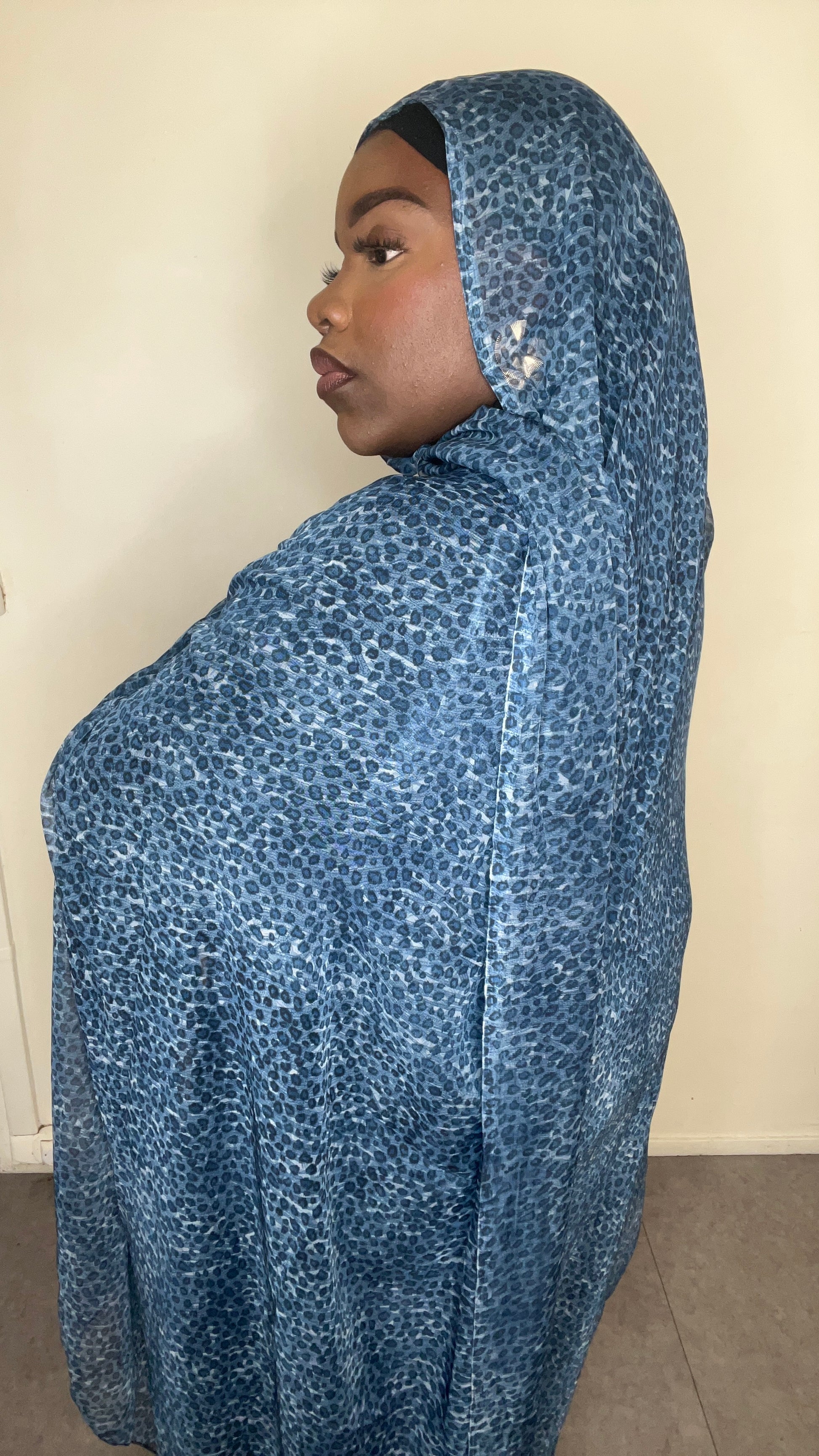 DAMPÉ À MOTIF LÉOPARD BLEU EN MOUSSELINE