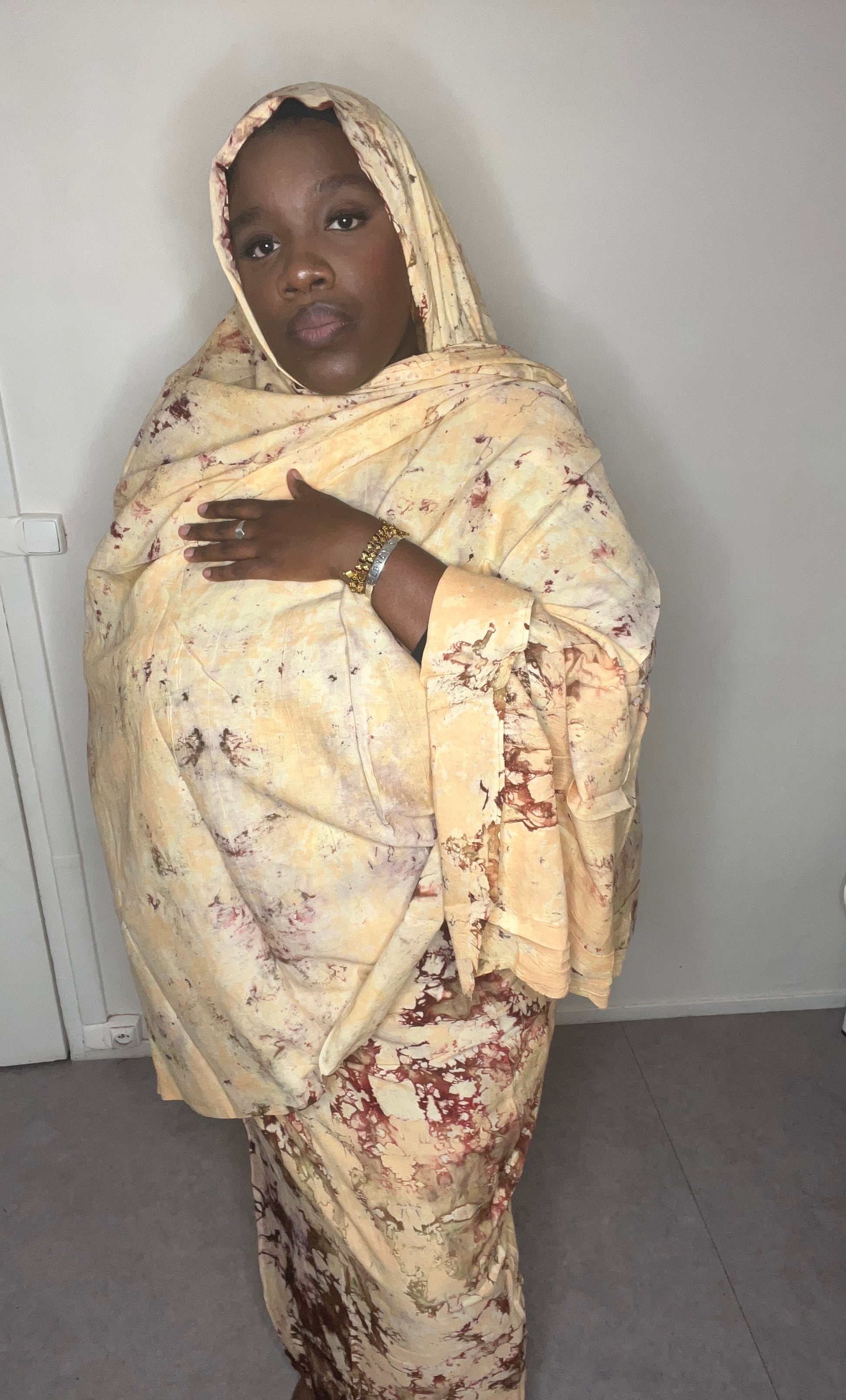 Dampé à motif beige marron avec des reflets rouge