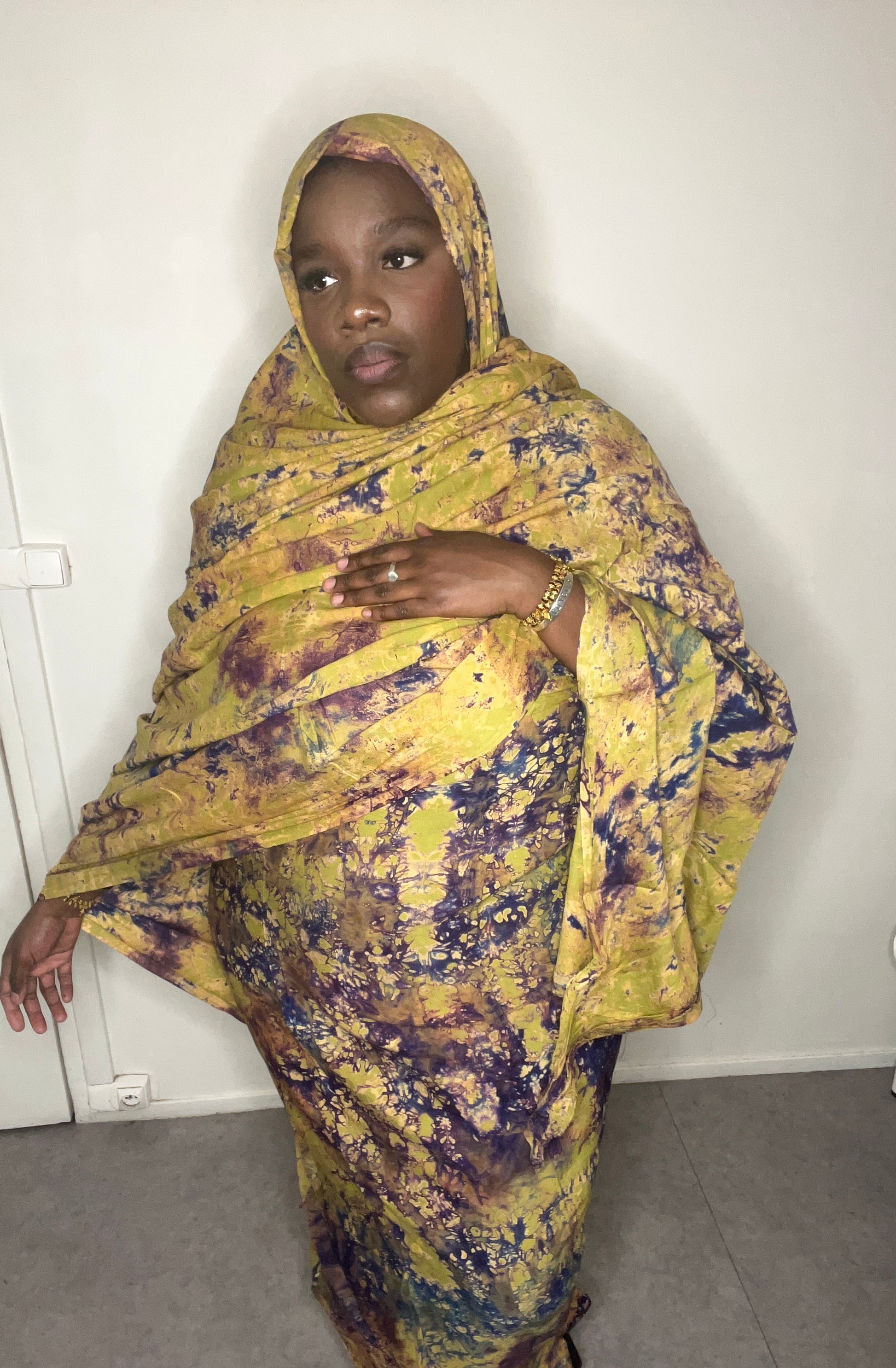 Dampé à motif vert violet avec des reflets bleu