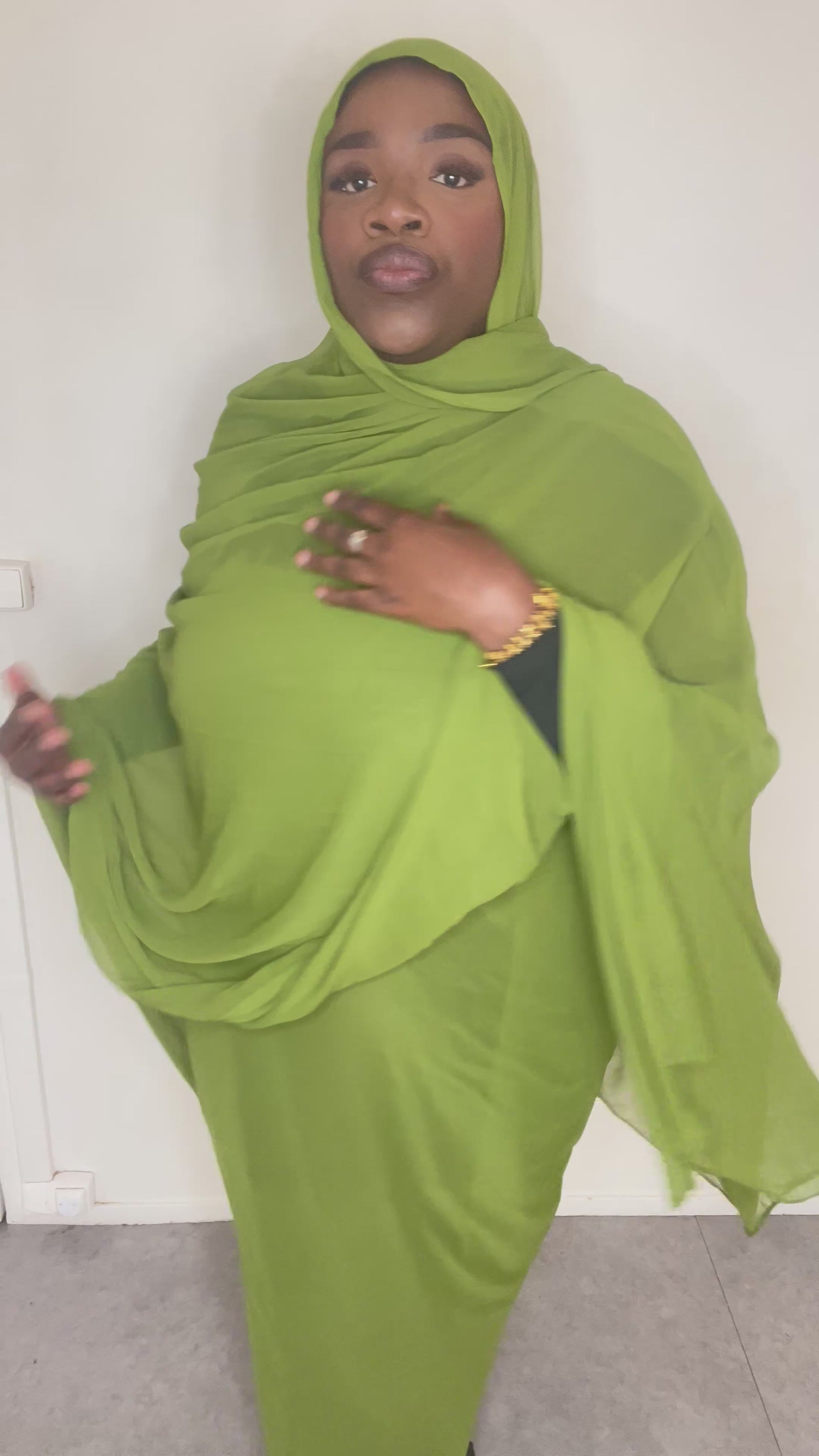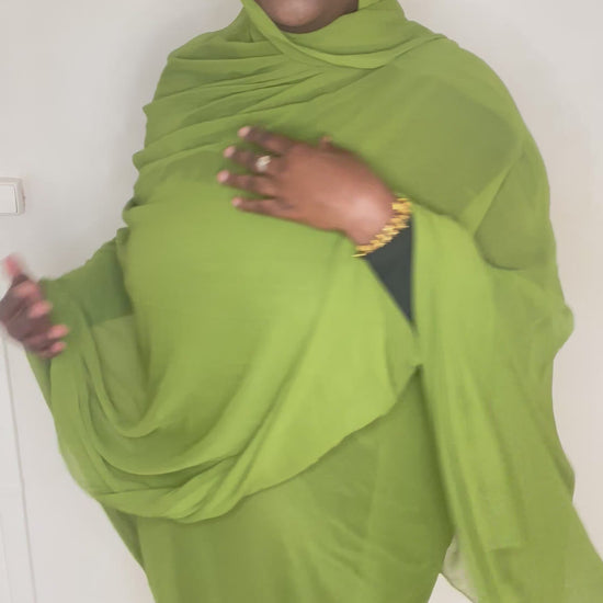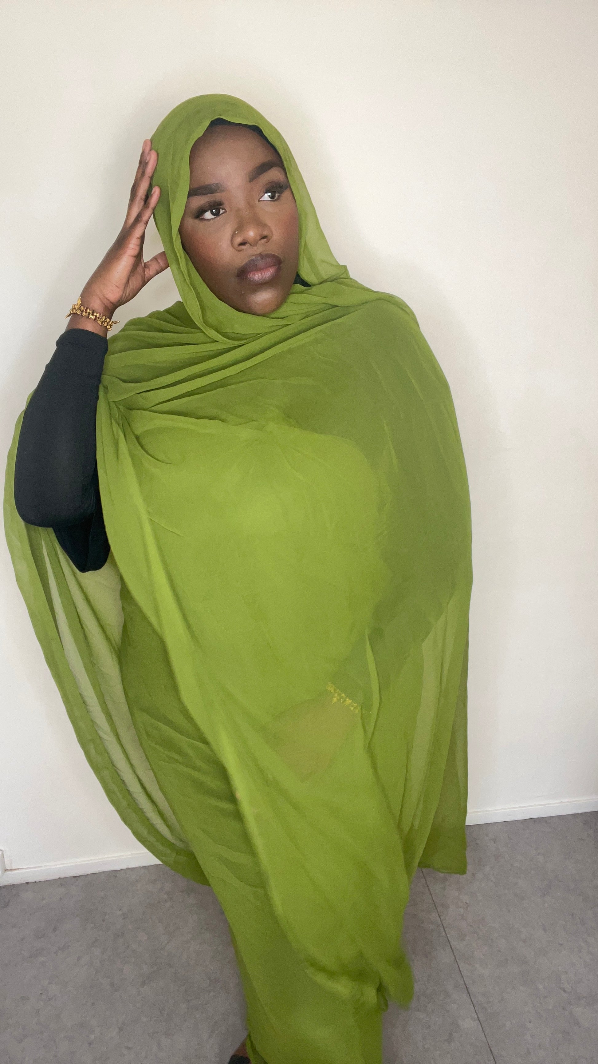 Frais, lumineux et audacieux, ce dampé en mousseline transparente vert pomme apporte une touche de couleur éclatante à ta tenue.