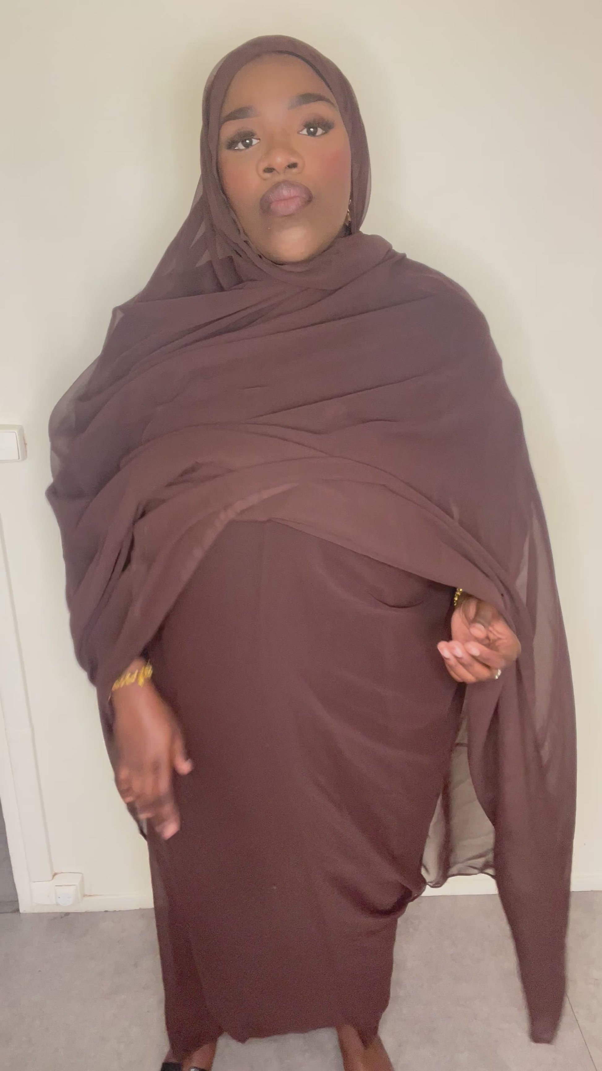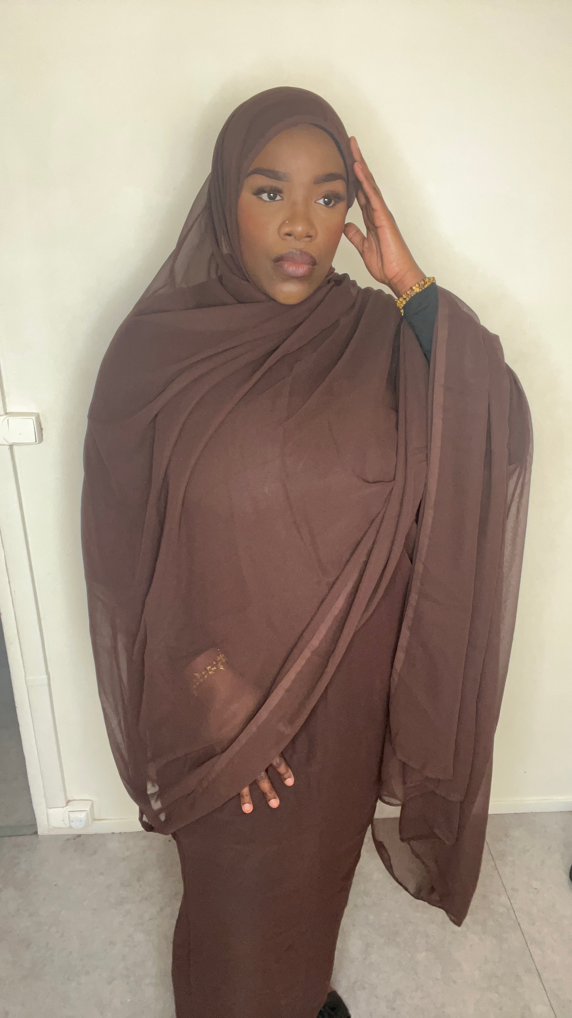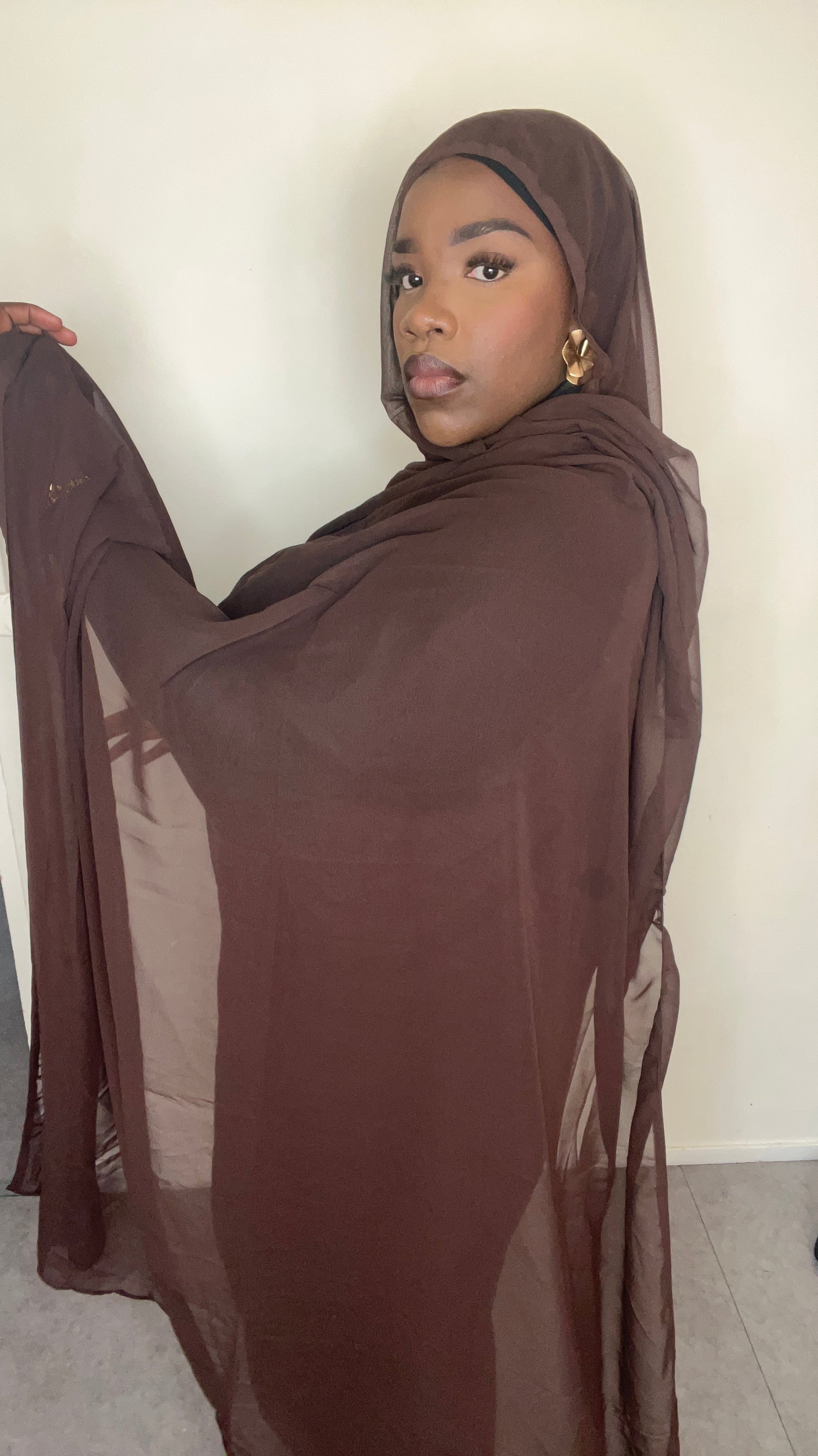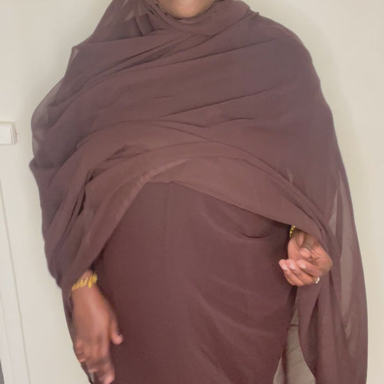 Élégant, fluide et léger, ce dampé en mousseline marron transparente apporte une touche chic et raffinée à ta tenue.